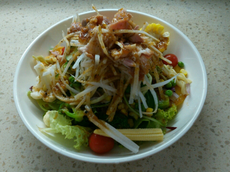 野菜が取りにくいシンガポール外食ライフにて貴重なサラダの屋台で注文したもの。サラダ専門店のものだったので、美味しかったです。