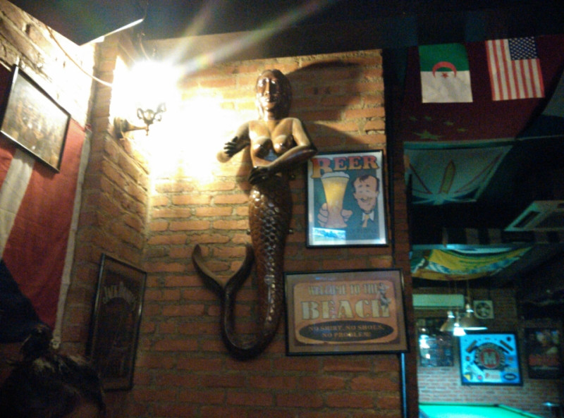 (女性バーテンダーとアンモー男性がインドネシア語で会話していた。)